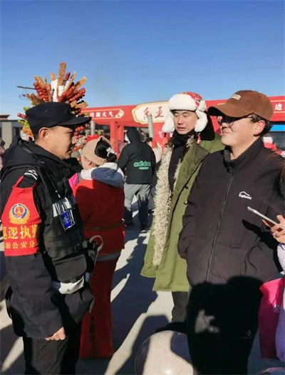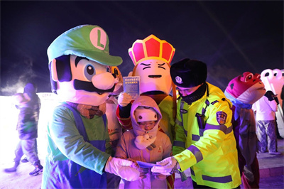 在嚴密園區(qū)全時空動態(tài)化防控的同時,民警輔警還臨時客串起了“導(dǎo)游”和“攝影師”,為游客介紹線路、拍照留念,讓廣大游客真正感受到冰雪世界的熱情與魅力。