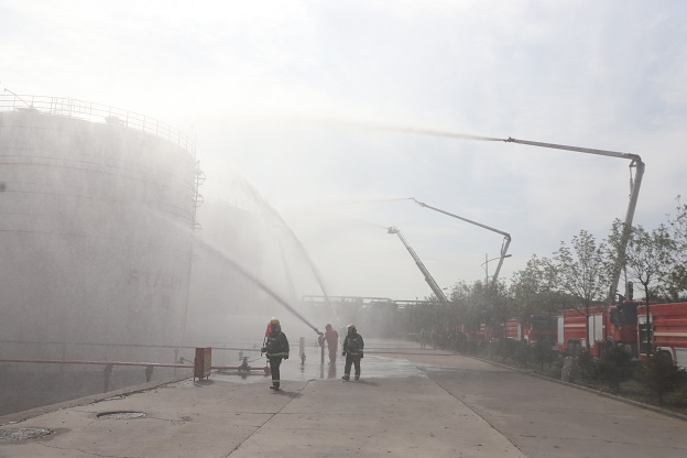 此次演練以慶華集團(tuán)精細(xì)化工芳烴儲罐泄露著火事故為背景,主要圍繞應(yīng)急處突、火情控制、人員救護(hù)、外圍安保、交通管控、現(xiàn)場勘查及各單位應(yīng)急聯(lián)動情況展開演練。