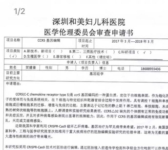 兩個基因編輯嬰兒在這家醫(yī)院出生;項目的醫(yī)學(xué)倫理審查申請書由“深圳和美婦兒科醫(yī)院倫理委員會”醫(yī)院負(fù)責(zé)人黃華峰帶頭簽字。