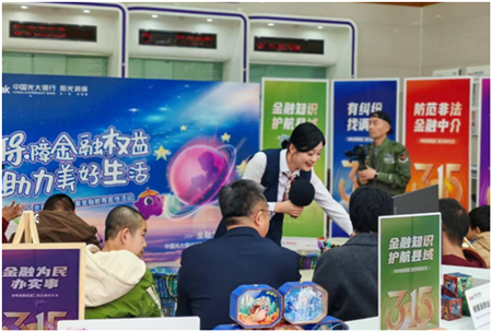 “保障金融權(quán)益 助力美好生活”。今年“3?15”金融消費(fèi)者權(quán)益保護(hù)教育宣傳活動(dòng)期間,中國光大銀行深入踐行“金融為民”理念,以增強(qiáng)社會(huì)公眾維護(hù)自身合法權(quán)益的意識(shí)和能力為目標(biāo),在全國各地組織開展了豐富多樣的宣教活動(dòng),以實(shí)際行動(dòng)做好金融消費(fèi)者權(quán)益保護(hù)工作。