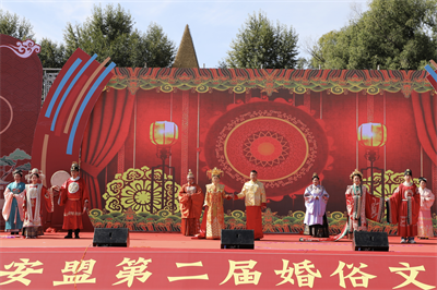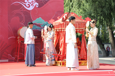 開(kāi)幕式剛過(guò)活動(dòng)現(xiàn)場(chǎng)迎來(lái)了一場(chǎng)“傳統(tǒng)與現(xiàn)代”碰撞的婚俗盛宴。