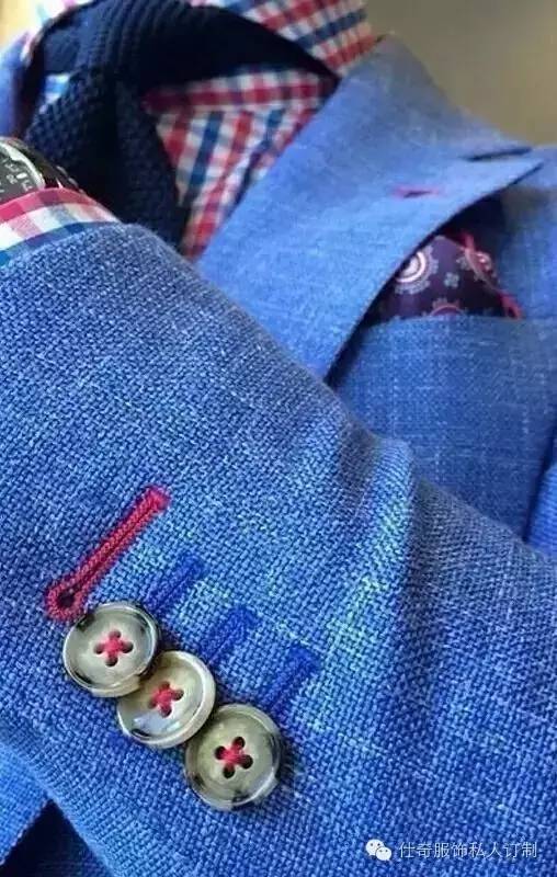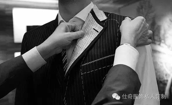 高檔西裝中,需要手工處理的地方不少,比如手工駁頭。翻開高檔西裝衣服的駁頭,可以看見反面密密麻麻的針眼,好處就是,人手在“納八字”的時候會有意識地“給力”,不僅僅是機器平平展展地縫上特定的線跡,而是縫合的同時用手“加力”,一旦完成,駁頭就具有不同的自然卷曲,允許領子在不同狀態(tài)下自由舒展。