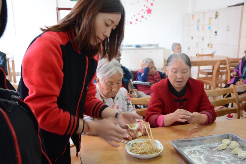 隨后,志愿者們分成了若干組,為敬老院打掃庭院、清理垃圾;和老人們促膝談心、關(guān)心老人們的起居情況。中午時分,志愿者們?yōu)槔先藗儨?zhǔn)備重陽節(jié)午餐—餃子宴,小小的廚房內(nèi)擠滿了忙得不亦樂乎的人們,他們揪面團、搟餃子皮、包餃子,和老人們一起,共享重陽節(jié)此刻的歡樂,向老人們表達了節(jié)日的祝福。