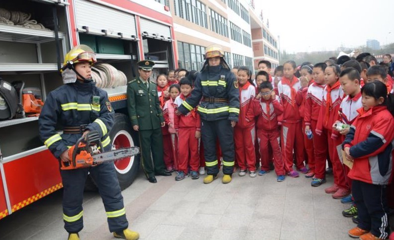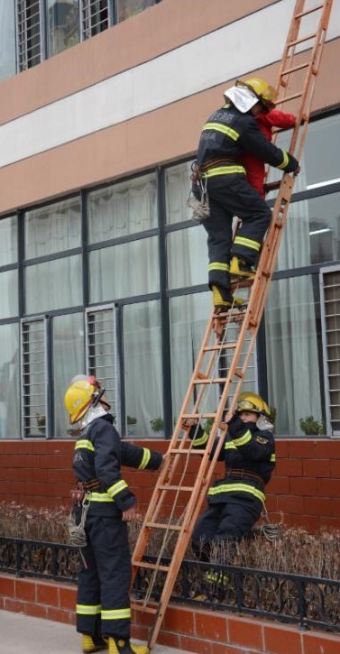呼和浩特市賽罕區(qū)消防大隊教官在消防演練前,通過廣播向全體師生講解如何在火災現(xiàn)場逃生、自救等消防知識,隨后開展了一場全面的消防逃生演練?!罢埲w師生注意,學校發(fā)生火災,請同學們在班級老師的帶領下有序撤離教學樓!”上午10時15分,校園廣播室里傳出警報聲,學校立即啟動了消防疏散預案。學生們在老師的帶領下,手拿浸濕的毛巾或紙濕巾捂住口鼻,阻擋煙塵入口,彎腰低頭姿勢進行,迅速向樓外撤離。到達安全地點后,各班班主任馬上集合本班學生清點人數,并向領導進行匯報。此時,發(fā)現(xiàn)樓上有被困學生。接到“報警”后的消防員們在第一時間趕到現(xiàn)場,用最快速度確定營救方法,并展開消防救援。經過緊張有序的疏散演練,被困學生獲救,全體師生撤離到安全地點。 演習結束后,在消防教官的帶領下,同學們參觀了消防車,零距離接觸體驗消防裝備,聽消防員講解相關避險要點,不斷獲取消防知識。
