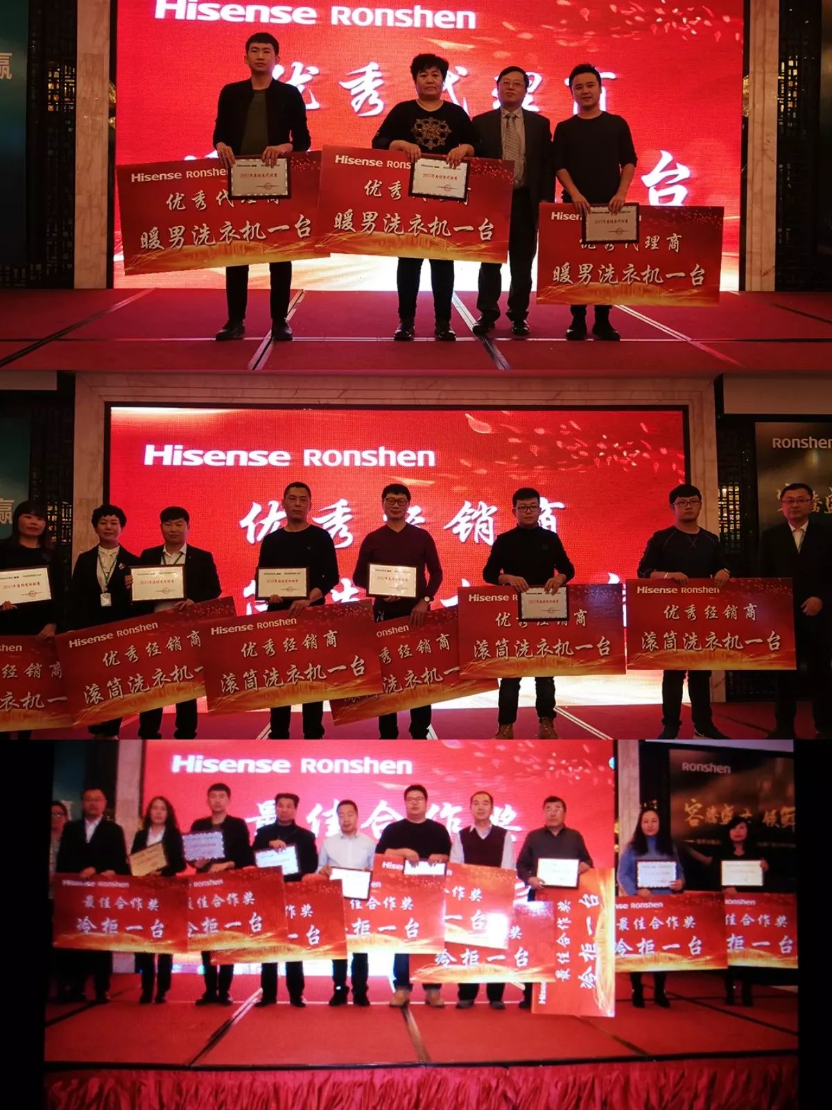 表彰環(huán)節(jié)將本次會議推向高潮。分公司對過去一年表現(xiàn)優(yōu)異的商家進行表彰,同時期待在座的各位商家朋友一起譜寫海信容聲2018年的新篇章。