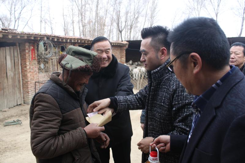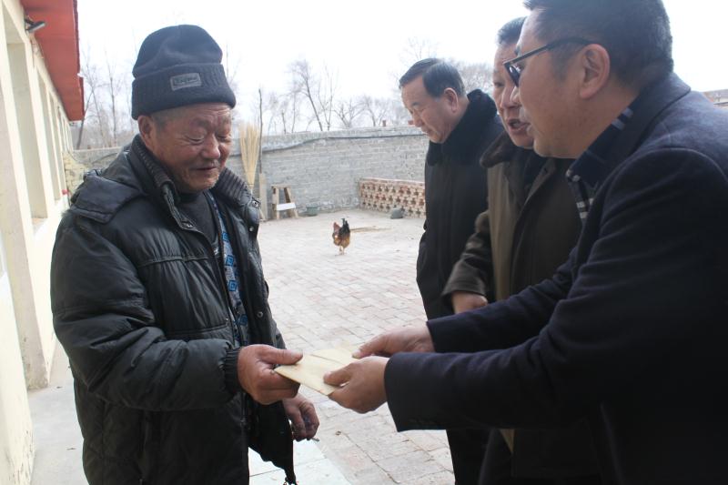 數(shù)九寒天,野地荒蕪,在鄉(xiāng)道上,轉(zhuǎn)來轉(zhuǎn)去,終于找到了地處偏僻的油坊營村。一個自然村,也就三十來戶人家,有六家貧困戶。他們分別是王貴生、王黑也、成貴、成根堂、成福小、劉滿。當村長領(lǐng)著我們挨家挨戶進行慰問時,米面油和一個五百元的紅包,本來只是一個小小的心意,但是他們心情十分激動,幾位老人病人還默默流出了眼淚。