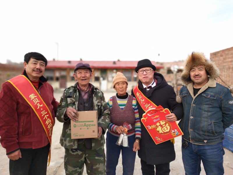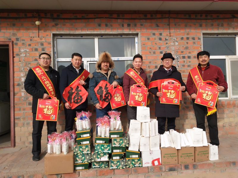 (本網(wǎng)訊:楊子奇)近日,全國商界精英商會(huì)、內(nèi)蒙古蒙貝兒生物科技有限公司聯(lián)合創(chuàng)始人兼首席顧問楊曉東、總經(jīng)理?xiàng)钏纺稀⑷齻€(gè)媽媽電子商務(wù)(北京)有限公司董事長兼CEO楊子奇、陳廣林先生、滿洲里駐呼辦董燕青主任等愛心人士一行驅(qū)車80公里來到呼市托克托縣油坊營村,企業(yè)家們帶來春節(jié)禮品:春聯(lián)、蒙貝兒羊胎素、洽洽瓜子、黃飛紅花生、大白兔奶糖、軍用皮鞋,黑龍江哈爾濱、加格達(dá)奇二位精英會(huì)會(huì)員捐款!到了村里,大家冒著臘月凜冽的寒風(fēng),走訪慰問村里困難群眾,并發(fā)放了慰問禮品!