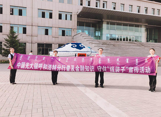 6月19日,光大銀行呼和浩特分行還專門抽調(diào)了優(yōu)秀蒙古族員工組成了蒙古語(yǔ)宣講團(tuán),用蒙漢雙語(yǔ)為內(nèi)蒙古自治區(qū)少數(shù)民族同胞們送上金融知識(shí)宣傳普及與金融服務(wù)。