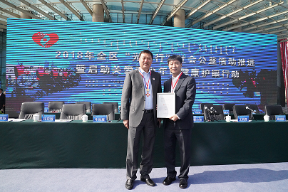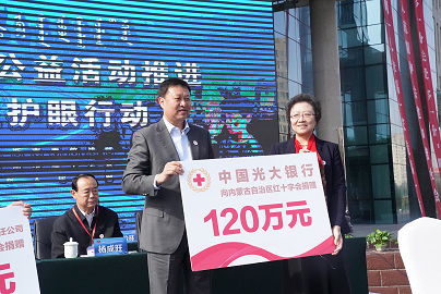 啟動儀式上,光大銀行總行姚仲友副行長代表光大銀行向內(nèi)蒙古自治區(qū)紅十字會捐贈人民幣120萬元整,用于關(guān)愛少數(shù)民族地區(qū)貧困家庭青少年眼健康。內(nèi)蒙古自治區(qū)政府向光大銀行頒發(fā)了博愛榮譽獎?wù)隆?