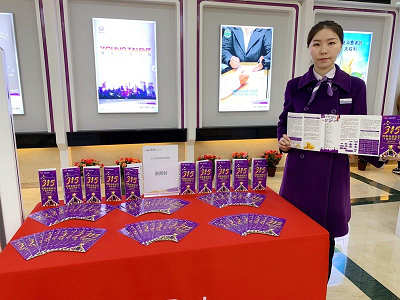 (王振濤/通訊員)為進(jìn)一步普及金融知識(shí),提高社會(huì)公眾金融安全意識(shí),2019年3月,光大銀行呼和浩特分行全轄開展了為期一個(gè)月的3.15消費(fèi)者權(quán)益保護(hù)和金融知識(shí)宣傳教育活動(dòng),緊扣“以消費(fèi)者為中心優(yōu)化服務(wù)”、“權(quán)利、責(zé)任、風(fēng)險(xiǎn)”的活動(dòng)口號(hào),做好“六統(tǒng)一”和“七個(gè)必須”,通過開展消費(fèi)者教育宣傳活動(dòng),加強(qiáng)對(duì)金融消費(fèi)者風(fēng)險(xiǎn)責(zé)任意識(shí)的教育,提升金融消費(fèi)者的風(fēng)險(xiǎn)管理能力和責(zé)任承擔(dān)意識(shí),創(chuàng)新服務(wù)形式,展現(xiàn)銀行業(yè)良好形象,提升社會(huì)公眾滿意度。