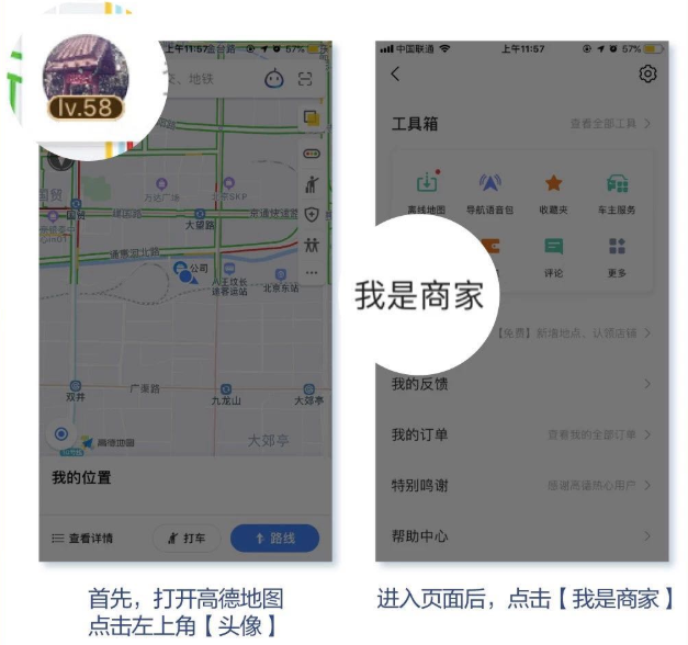 目前,“小店發(fā)光”計(jì)劃包含三個(gè)部分。其一,讓小店入駐更方便。高德地圖將小店入駐入口調(diào)整至更明顯的位置,點(diǎn)擊主頁面左上角頭像,選擇“我是商家”即可,方便查找,方便入駐。小店主上傳小店和營業(yè)執(zhí)照的照片,填寫相關(guān)信息,高德地圖將24小時(shí)內(nèi)完成審核、上線。全過程不需中介,完全自主、免費(fèi)。