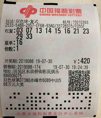 7月30日,雙色球第2019088期開獎(jiǎng),來(lái)自呼和浩特市回民區(qū)東洪橋街的第15010393號(hào)福彩銷售站中出一注雙色球二等獎(jiǎng),獎(jiǎng)金203777元!