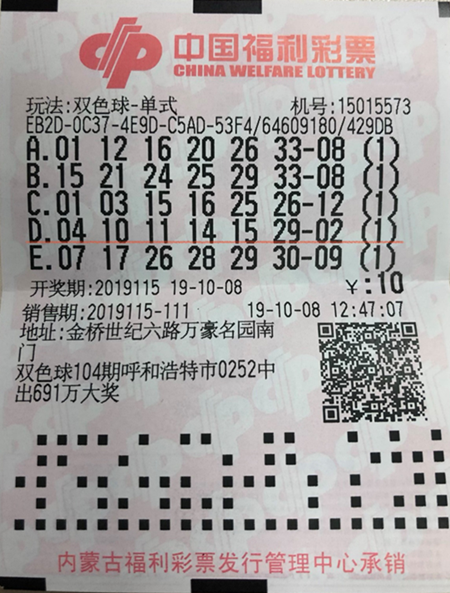 10月8日,雙色球第2019115期開獎,來自呼和浩特市金橋世紀六路萬豪名園的第15015573號福彩銷售站中出一注雙色球二等獎,獎金155208元!