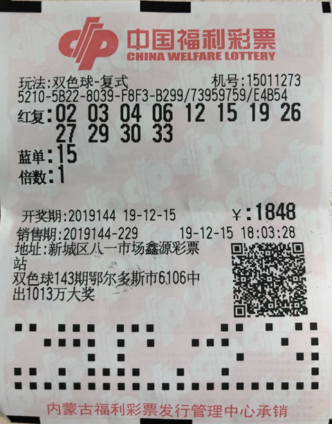 12月15日,雙色球游戲第2019144期開(kāi)獎(jiǎng),來(lái)自呼和浩特市新城區(qū)八一市場(chǎng)的第15011273號(hào)福彩銷售站中出一注雙色球二等獎(jiǎng),獎(jiǎng)金124361元!