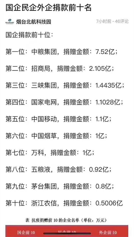 大悅城控股向武漢慈善基金總會(huì)捐贈(zèng)1000萬元現(xiàn)金,中糧油脂向湖北黃岡捐贈(zèng)價(jià)值50萬元的食用油產(chǎn)品。