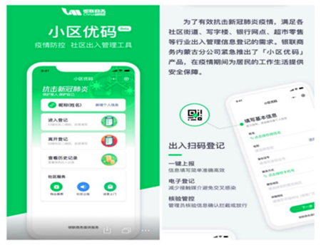 在當(dāng)前全國(guó)同舟共濟(jì)抗疫情、齊心協(xié)力防病毒的關(guān)鍵時(shí)期,銀聯(lián)商務(wù)內(nèi)蒙古分公司堅(jiān)決貫徹“服務(wù)社會(huì)、方便大眾”的經(jīng)營(yíng)理念,勇?lián)髽I(yè)公民責(zé)任,從疫情防控實(shí)際需求出發(fā),積極響2月10日在國(guó)務(wù)院召開(kāi)的聯(lián)防聯(lián)控機(jī)制新聞發(fā)布會(huì)上陳越梁司長(zhǎng)號(hào)召,將社區(qū)防控作為打贏疫情防控阻擊戰(zhàn)關(guān)鍵環(huán)節(jié),第一時(shí)間研發(fā)了社區(qū)出入登記軟件——防疫電子信息登記系統(tǒng)“銀商小區(qū)優(yōu)碼”(通用版),供各社會(huì)機(jī)構(gòu)和廣大群眾免費(fèi)使用,有效減輕防疫一線人員工作負(fù)擔(dān),同時(shí)杜絕因紙筆信息登記造成交叉感染的現(xiàn)象發(fā)生,為全面打贏防控阻擊戰(zhàn)提供強(qiáng)力“武器”!自2月11日正式推出以來(lái)深受社會(huì)各界的歡迎和廣泛推廣使用。