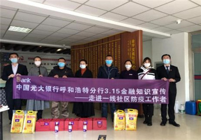 為突出特色,該行積極整合多方資源,走進(jìn)消費(fèi)者,開展了針對(duì)特殊消費(fèi)者群體的宣傳活動(dòng)。3月7日起,該行組織全轄網(wǎng)點(diǎn)開展3·15武漢加油主題客戶有獎(jiǎng)?wù)鞲寤顒?dòng),近400名消費(fèi)者參與設(shè)計(jì)繪畫、書法、短文等作品,記錄疫情防控期間的真情實(shí)感,致敬奮戰(zhàn)在一線的工作者,傳遞人間真情,體現(xiàn)光大情懷。3月15日,該行組織網(wǎng)點(diǎn)員工進(jìn)入社區(qū)防疫點(diǎn)組織掃碼有獎(jiǎng)問(wèn)答,并慰問(wèn)社區(qū)工作人員,向奮戰(zhàn)在一線的街道社區(qū)的工作者送去光大關(guān)愛和溫暖。