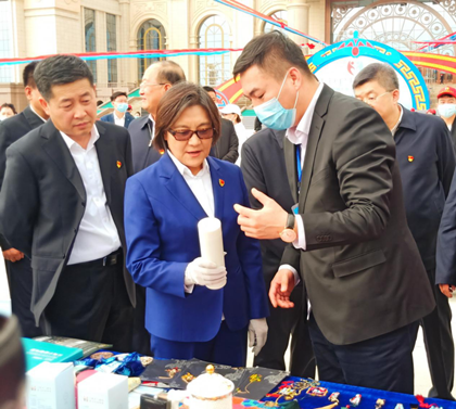 啟動儀式后,布小林、王莉霞、張恩惠等領(lǐng)導參觀了紅城·青城文化旅游產(chǎn)品大集,并對參展的內(nèi)蒙古未名洋文化產(chǎn)業(yè)公司在文創(chuàng)產(chǎn)品的創(chuàng)新、蒙元文化的傳播等方面取得的成績給予了高度評價和肯定。
