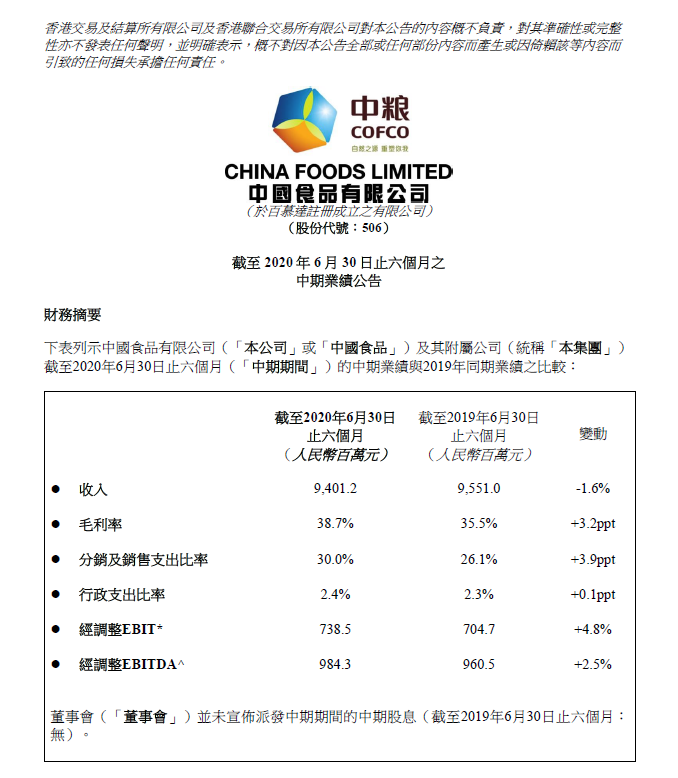 8月25日,中糧可口可樂(lè)大股東中國(guó)食品(股票代碼:00506.HK)發(fā)布了2020年中期業(yè)績(jī)報(bào)告。期內(nèi),中國(guó)食品營(yíng)收94.01億元(單位:人民幣,下同),毛利率同比上浮3.1個(gè)百分點(diǎn)至38.7%。