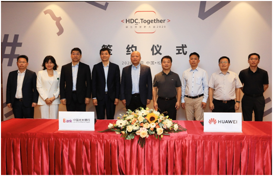 9月12日,光大銀行與華為軟件技術(shù)有限公司在東莞“華為開發(fā)者大會2020(Together)”上簽署合作備忘錄。根據(jù)協(xié)議,雙方將在光大銀行金融科技領(lǐng)域和華為服務(wù)號開展全面合作。光大銀行副行長楊兵兵與華為消費者業(yè)務(wù)云服務(wù)總裁張平安出席該簽約儀式。