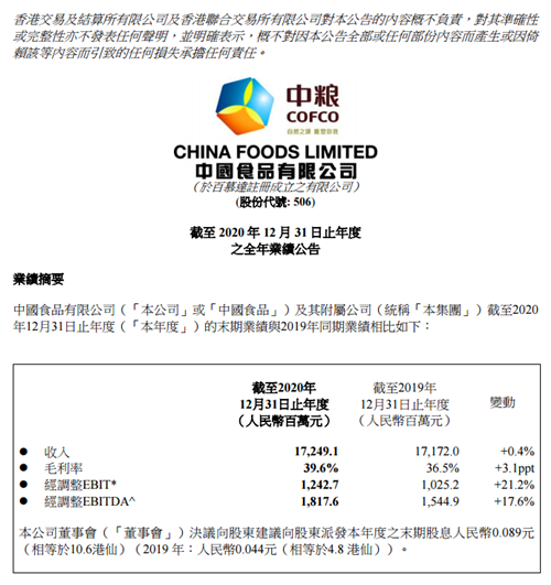 今天,中糧可口可樂大股東中國食品(股票代碼:00506.HK)發(fā)布2020年全年業(yè)績報(bào)告。