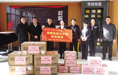 工銀“烏蘭牧騎”通遼經(jīng)濟(jì)技術(shù)開發(fā)區(qū)支行小分隊(duì)為學(xué)校捐贈(zèng)防疫物資。