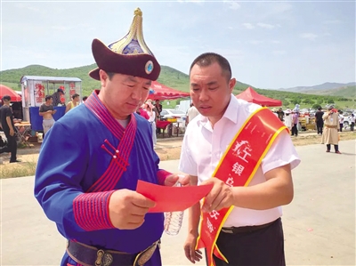 強(qiáng)化基層黨建共建。實(shí)施手拉手、結(jié)對(duì)子工程,黨建+金融融合,政府+銀行聯(lián)動(dòng),充分發(fā)揮基層黨員的模范帶頭作用和基層黨組織的戰(zhàn)斗堡壘作用,用黨建工作優(yōu)勢(shì)為鄉(xiāng)村振興注入強(qiáng)勁動(dòng)力。李峰表示,要依托烏蘭牧騎自有的紅色基因,發(fā)揮老區(qū)紅色故事、紅色家底在深入開展黨史學(xué)習(xí)教育中的關(guān)鍵作用,以“工銀‘烏蘭牧騎’+黨史聯(lián)學(xué)共建”的形式,與蘇木嘎查開展黨建共建、紅色教育、金融科普、調(diào)研慰問等方面的活動(dòng),為群眾送去思想上的關(guān)心、經(jīng)濟(jì)上的資助、生活上的照顧和精神上的慰問,增添鄉(xiāng)村群眾致富的信心與動(dòng)力。