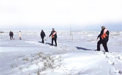 工銀“烏蘭牧騎”蘇尼特右旗支行小分隊(duì)冒著風(fēng)雪為鄉(xiāng)村群眾提供上門服務(wù)。