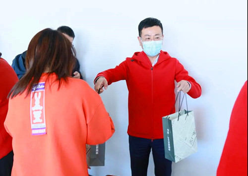 吳海勇一行為誠信督導(dǎo)區(qū)的內(nèi)外勤同仁準(zhǔn)備了暖心防疫大禮包,為隊(duì)伍帶來貼心關(guān)懷。
