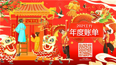在呈現(xiàn)方式上,賬單創(chuàng)造性的采取“刷卡”方式打開,給人耳目一新的感覺。形式上以古代盛世平凡百姓勞作、吃飯、逛街等日常生活場景為背景,采用“清明上河圖”的創(chuàng)意,整個賬單正文頁合起來形成一幅完整的長卷軸國畫,有行云流水之意。賬單整體采用暖色調(diào),匯集大紅燈籠、煙花、祥云、集會等傳統(tǒng)元素,與新年歡樂、團(tuán)結(jié)的氣氛相契合,在畫風(fēng)上呈現(xiàn)當(dāng)前流行的新國潮,吸引Z世代年輕用戶的喜愛,也彰顯了對中華優(yōu)秀傳統(tǒng)文化的自信。同時,通過設(shè)置“閑話古‘金’”欄目,引導(dǎo)用戶點(diǎn)擊挖掘相關(guān)金融小趣聞,介紹古代人們勞動、生活、公益、環(huán)保等金融實(shí)踐的相關(guān)背景,體現(xiàn)了金融為民、綠色金融特點(diǎn)。