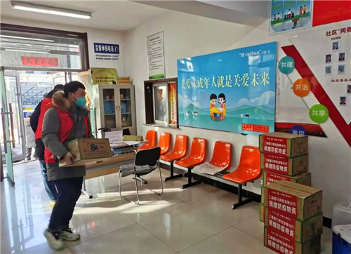 內(nèi)蒙古分行機(jī)關(guān)團(tuán)委組織青年員工前往社區(qū)慰問一線防疫工作者,為他們送去口罩、面罩等防疫物資和暖寶寶、方便食品等生活物資。