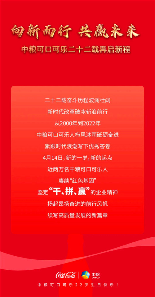 向新而行 共贏未來| 中糧可口可樂二十二載再啟新程!