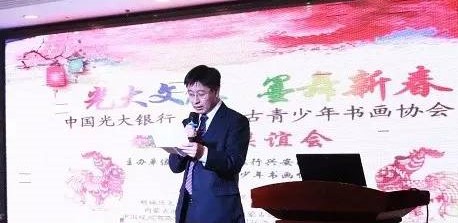 2017年1月4日下午3點(diǎn),呼和浩特市烏蘭察布東街萬戴國際酒店4樓,內(nèi)蒙古青少年書畫協(xié)會(huì)與中國光大銀行興安南路支行攜手舉辦“光大文脈 ·墨舞新春”新年聯(lián)誼會(huì)活動(dòng)?;顒?dòng)由秘書長李茂霖主持,中國光大銀行呼和浩特分行李建利行長、書畫協(xié)會(huì)蔡德生會(huì)長致新年賀辭。