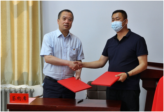 建設(shè)銀行呼和浩特分行黨委委員、副行長(zhǎng)宋飚同志與托克托縣五申鎮(zhèn)鎮(zhèn)長(zhǎng)呼存圖同志簽訂框架合作協(xié)議。