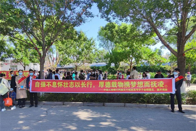 赤峰阿旗支行在考場外拉起橫幅,為考生加油打氣,并配備愛心志愿車第一時間為有緊急情況的考生提供幫助。