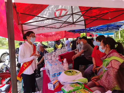 呼倫貝爾河東支行工作人員前往考場外搭建愛心助考服務站,為考生及家長提供防疫物資、飲用水、藥品等免費便民服務。