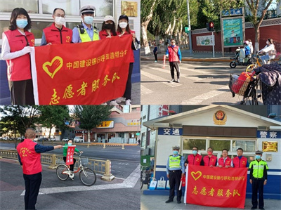 建設銀行呼和浩特分行志愿者們正在參與志愿服務維護交通秩序,一遍又一遍的提醒和勸導得到了行人的認同。