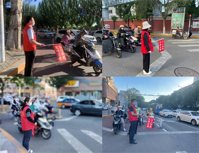 建設銀行志愿者們身著紅色馬甲,手拿小紅旗,站在路口的不同位置指引行人和非機動車規(guī)范出行,對行人、電動車亂穿馬路、闖紅燈等不文明行為予以耐心、禮貌的勸導,引導廣大市民遵守交通法規(guī),用行動告訴市民文明參與交通的重要性。