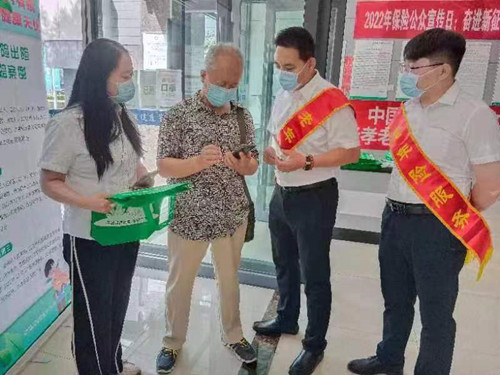 在開展好 “助推鄉(xiāng)村振興、服務(wù)老年群體”保險公益健步走活動等行業(yè)協(xié)會統(tǒng)一推出的常規(guī)性動作外,呼和浩特分公司運營服務(wù)部、健康保險部、風(fēng)險管理部、綜合部等部門,于2022年7月8日在呼和浩特分公司旗下營業(yè)網(wǎng)點開展線下宣傳活動。