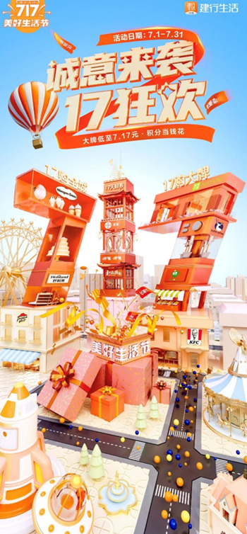 2021年7月,建設(shè)銀行積極踐行“以人民為中心”的新金融理念,以服務(wù)人民美好生活為初心與愿景,重磅推出建行生活app。作為建行全力打造的本地生活服務(wù)平臺(tái),建行生活集餐飲外賣、娛樂(lè)出行、充值繳費(fèi)等場(chǎng)景功能于一體,形成了多樣化新零售、新消費(fèi)生態(tài)場(chǎng)景,自推出一年以來(lái),已成為中國(guó)建設(shè)銀行積極融入百姓煙火、服務(wù)百姓民生的一張閃耀名片。今年7月,在迎來(lái)建行生活周年慶之際,為更好回饋廣大用戶,同時(shí)也為聚焦民生,踐行責(zé)任,深入貫徹落實(shí)“穩(wěn)經(jīng)濟(jì)、保增長(zhǎng)、促消費(fèi)”要求,建行生活全面啟動(dòng)“717美好生活節(jié)”,圍繞百姓高頻消費(fèi)的商超、餐飲、外賣、觀影等場(chǎng)景,推出了一系列優(yōu)惠權(quán)益活動(dòng),7.17元購(gòu)瑞幸咖啡代金券,17元購(gòu)肯德基、必勝客超值套餐,71.7元換購(gòu)百元餐飲券,好友拼團(tuán)送17元外賣券,消費(fèi)達(dá)標(biāo)送27元外賣券,更有買菜、買花、書(shū)店、觀影萬(wàn)張好券天天領(lǐng),優(yōu)惠多多,精彩不斷?!?17美好生活節(jié)”豐富的活動(dòng)為建行生活新老客戶帶來(lái)了領(lǐng)券活動(dòng)新體驗(yàn),帶來(lái)了實(shí)實(shí)在在的優(yōu)惠,也為平臺(tái)商戶帶來(lái)源源不斷的客流,提升平臺(tái)商戶客流量與交易額。建行生活以“接地氣”的活動(dòng)、實(shí)實(shí)在在的優(yōu)惠,激發(fā)消費(fèi)動(dòng)力,釋放消費(fèi)潛力,促進(jìn)消費(fèi)增長(zhǎng),重振市場(chǎng)信心,與廣大消費(fèi)者、商戶同頻共振,真正實(shí)現(xiàn)為人民美好生活增添精彩。