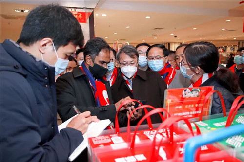 慶立軍與可口可樂公司大中華及蒙古區(qū)總裁聞笛(Vamsi Mohan Thati)走訪市場