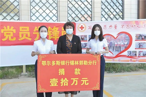 鄂爾多斯銀行錫林郭勒分行向紅十字會(huì)捐款10萬元支援疫情防控工作。