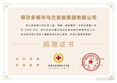 近日,鄂爾多斯市烏蘭集團通過內(nèi)蒙古自治區(qū)紅十字會,再次捐款3000萬元,專項用于全區(qū)的疫情防控。