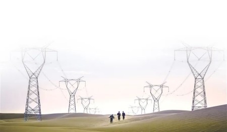 內(nèi)蒙古電力集團(tuán)職工在庫布其沙漠巡線。