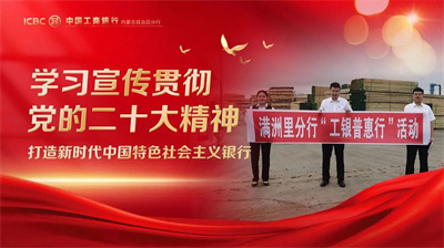 工商銀行滿洲里分行扎實(shí)推進(jìn)黨的二十大精神學(xué)習(xí)宣傳貫徹工作,深刻領(lǐng)悟二十大報(bào)告思想內(nèi)涵,對(duì)做好新形勢(shì)下金融及黨建工作深受啟迪。在總行“48字”工作思路和區(qū)分行“335”戰(zhàn)略指導(dǎo)下,持續(xù)推動(dòng)普惠金融業(yè)務(wù)標(biāo)準(zhǔn)化進(jìn)程。按照“做真、做實(shí)、做好、做活、做持久”的發(fā)展目標(biāo),通過(guò)加強(qiáng)機(jī)制建設(shè)、落實(shí)市場(chǎng)規(guī)劃、推動(dòng)重點(diǎn)產(chǎn)品,為鄉(xiāng)村振興和普惠業(yè)務(wù)發(fā)展奠定了堅(jiān)實(shí)基礎(chǔ)。