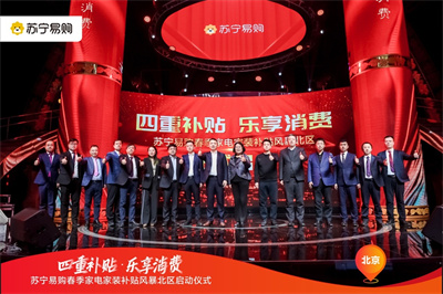 2月21日,蘇寧易購(gòu)北區(qū)九省市在北京召開(kāi)“四重補(bǔ)貼樂(lè)享消費(fèi)——蘇寧易購(gòu)春季家電家裝補(bǔ)貼風(fēng)暴”新聞發(fā)布會(huì)。此次會(huì)議上,蘇寧易購(gòu)發(fā)布北區(qū)連鎖發(fā)展戰(zhàn)略規(guī)劃,以及啟動(dòng)“四重補(bǔ)貼 樂(lè)享消費(fèi)”的家裝節(jié)促消費(fèi)活動(dòng),在各級(jí)政府政策指導(dǎo)下,聯(lián)合各行業(yè)合作伙伴全年發(fā)放20億元的消費(fèi)補(bǔ)貼。