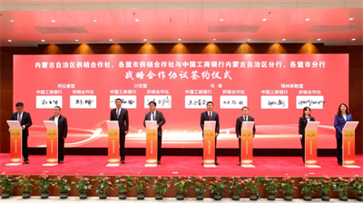 2023年10月19日上午,中國工商銀行內(nèi)蒙古自治區(qū)分行、各盟市分行與內(nèi)蒙古自治區(qū)供銷合作社、各盟市供銷合作社舉行全面戰(zhàn)略合作簽約。