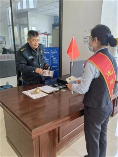 巴彥淖爾光明街支行走進(jìn)鐵路運(yùn)維客運(yùn)中心,向鐵路員工講解金融及防詐知識(shí)。