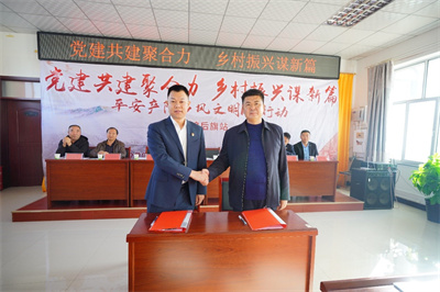 活動(dòng)現(xiàn)場(chǎng),平安產(chǎn)險(xiǎn)巴彥淖爾中支與中南渠村黨支部簽署了“黨建共建”合作協(xié)議,根據(jù)協(xié)議,平安產(chǎn)險(xiǎn)巴彥淖爾中支與杭錦后旗中南渠村共同加強(qiáng)鄉(xiāng)村黨建工作基礎(chǔ)、助力黨組織帶領(lǐng)農(nóng)戶增收致富,積極探索鄉(xiāng)村振興新模式。 “鄉(xiāng)風(fēng)文明100行動(dòng)”是平安產(chǎn)險(xiǎn)部署的推進(jìn)鄉(xiāng)村振興戰(zhàn)略的一項(xiàng)重要行動(dòng),主要以“保險(xiǎn)+”為依托,以黨建共建為聯(lián)結(jié)點(diǎn),以農(nóng)網(wǎng)隊(duì)伍為輻射,打造“基層黨組織+基層金融組織”的聯(lián)動(dòng)平臺(tái),充分發(fā)揮基層黨組織“領(lǐng)頭雁”作用,積極帶動(dòng)農(nóng)戶發(fā)展優(yōu)勢(shì)產(chǎn)業(yè),投身鄉(xiāng)村建設(shè)和產(chǎn)業(yè)發(fā)展,最終實(shí)現(xiàn)農(nóng)戶增收致富,助力鄉(xiāng)村振興建設(shè)。