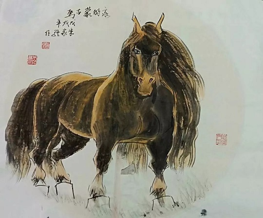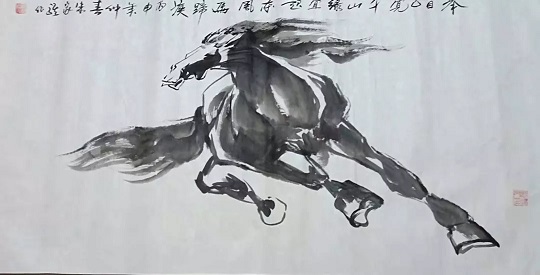 五十多年的畫馬經(jīng)歷,朱家騏創(chuàng)作了上萬幅蒙古馬畫作,積累了豐富的蒙古馬速寫素材,他鉆研學習古今畫馬大師的筆墨技巧,又融合現(xiàn)代大家的流派,從而形成他自己畫馬的獨特風格。
